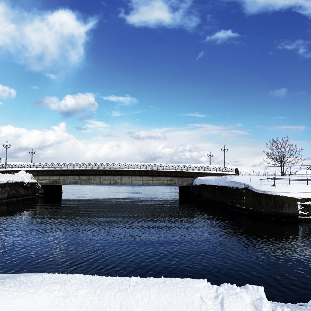 運河の奥にかかる…月見橋をのんびり眺めながら。