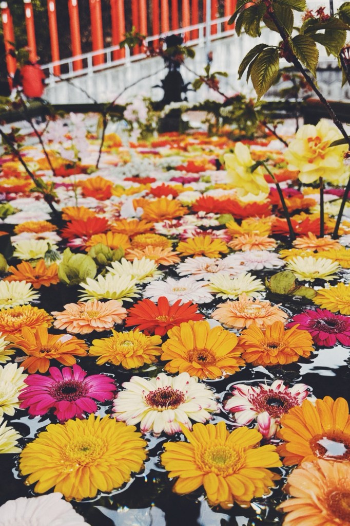 住吉神社の花手水。第2弾が終わったというのに…写真は第1弾のもの。最終日の5月6日に行けたので、バスを途中下車して撮影することに。